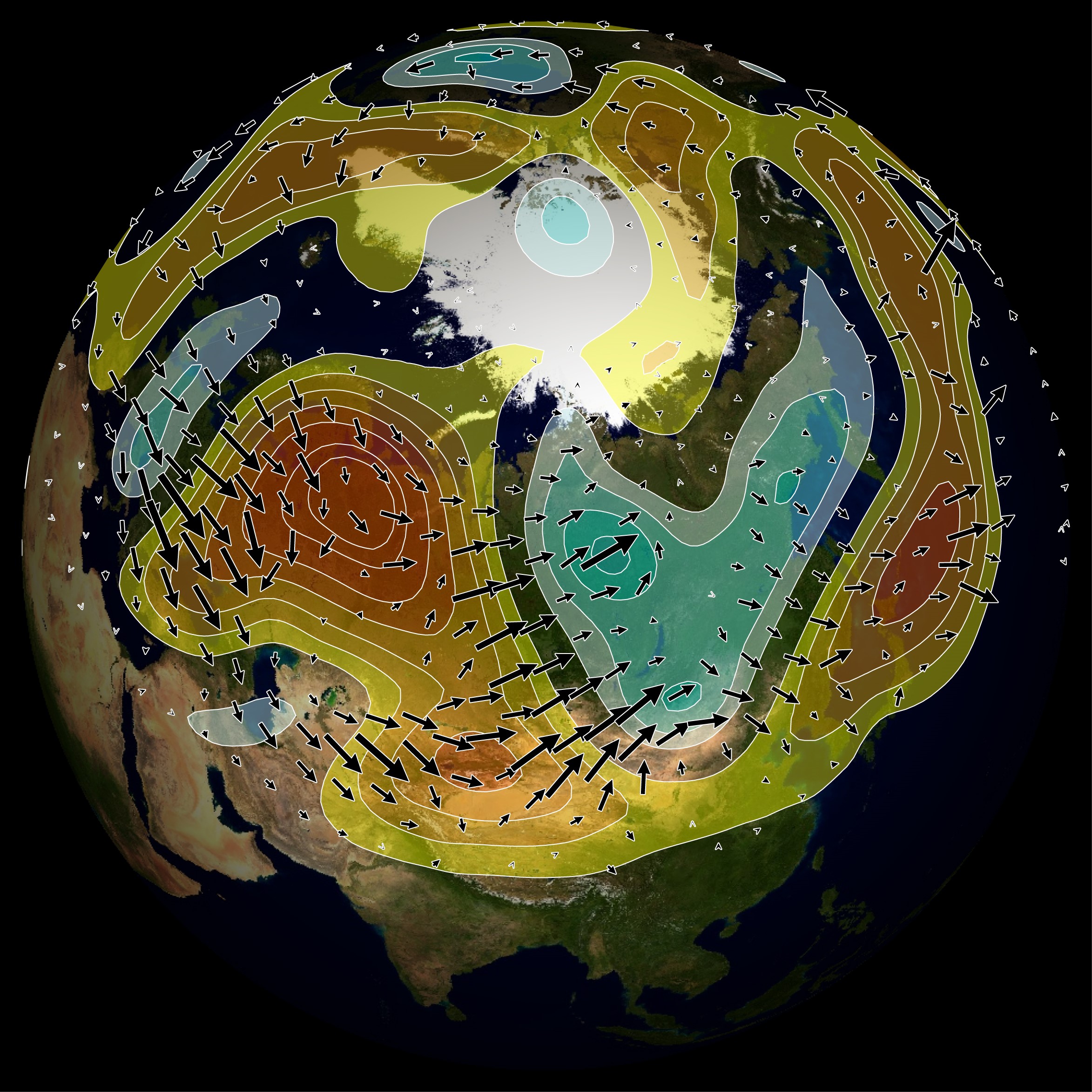 異常気象の要因は、第一に自然変動によるテレコネクションなどの大気循環変動です。このような大気変動はどのように形成・駆動されるのか、大気循環がいかにして異常気象をもたらすのか、そこでの海洋や海氷の役割は何か、予測の鍵はどこにあるのかといった課題に取り組んでいます。さらに、人類の影響によりゆっくりと温暖化する気候の中で、このような大気循環変動現象やそれがもたらす異常気象がどのように変わっていくのかの研究も進めています。